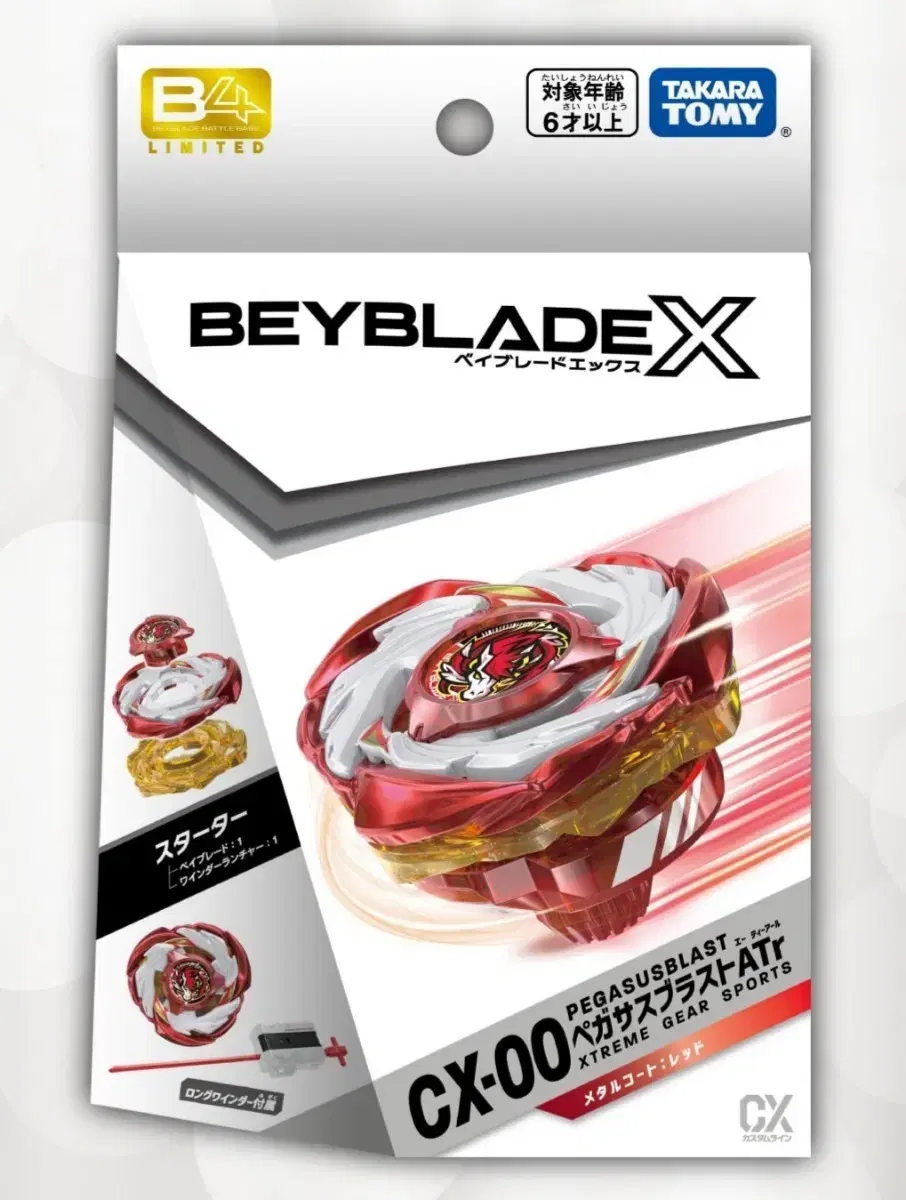 Beyblade Starter consists of a winder launcher and CX-00 B4 Limited Starter PegasusBlast ATr (Red Metallic Coat)